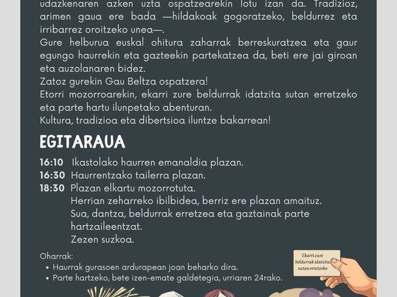 - Lazkao ofrecerá en los próximos días una amplia agenda cultural para todos los públicos, con una completa agenda que aúna Gaba Beltza, humor y cine.